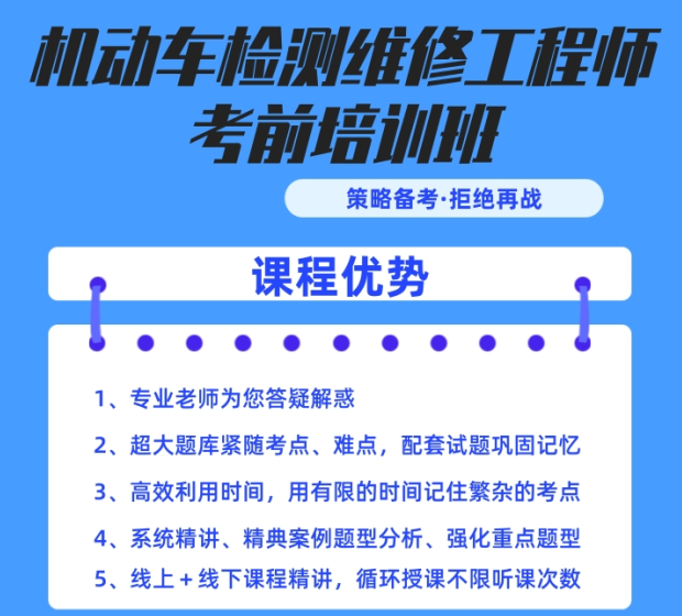 机动车检测维修工程师考前培训直播开课!2024备考的学员可以预定啦!早学习、早受益,快速掌握 提高考试通过率!直播课程【永久回看】【机动车检测维修工程师培训内容:(政策法规与技术、案例分析、实务;)上课时…[详情]